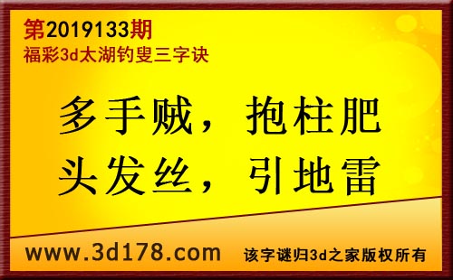 3d第19133期太湖字谜:多手贼,抱柱肥,头发丝,引地雷