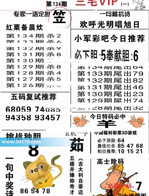 3d第2019134期三毛VIP详解: