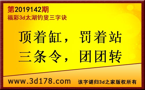 3d第19142期太湖字谜:顶着缸,罚着站,三条令,团团转