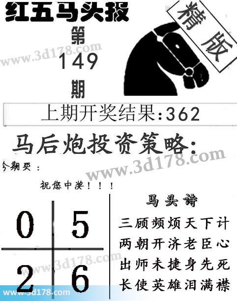 3d第2019149期红五马头报本期马头诗详解: