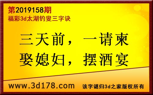 3d第19158期太湖字谜:三天前,一请柬,娶媳妇,摆酒宴