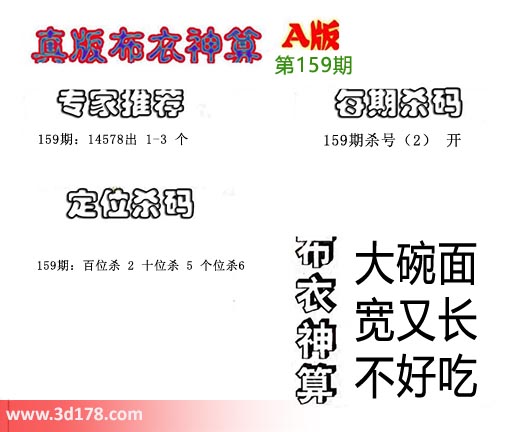 3d布衣神算第159期定位杀码: