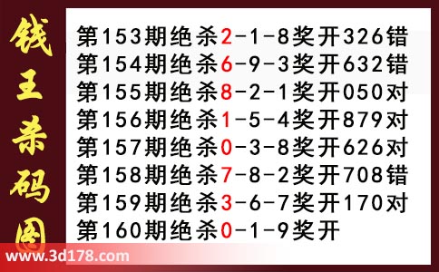 近期3d钱王杀码具体详情:
