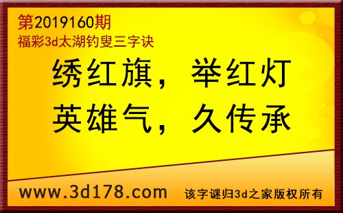 3d第19160期太湖字谜:绣红旗,举红灯,英雄气,久传承