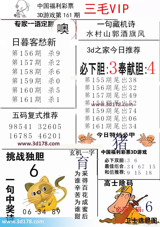3d第2019161期三毛VIP详解: