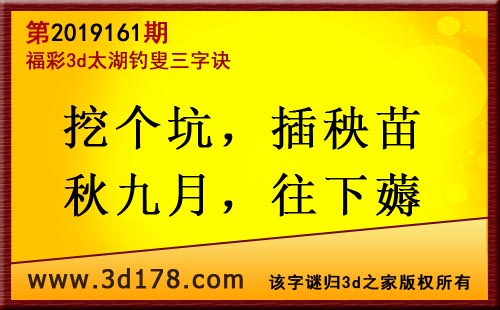 3d第19161期太湖字谜:挖个坑,插秧苗,秋九月,往下薅