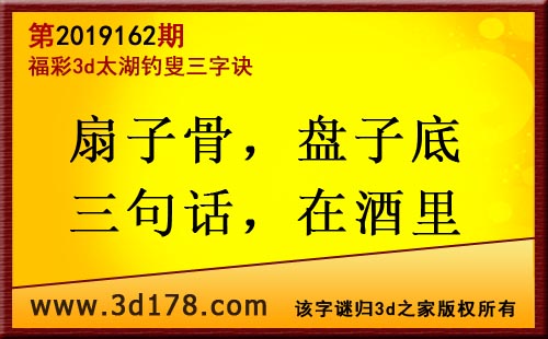 3d第19162期太湖字谜:扇子骨,盘子底,三句话,在酒里