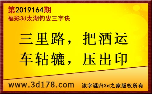 ‍3d第19164期太湖字谜:三里路,把酒运,车轱辘,压出印