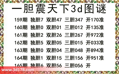 本期一胆震天下3d图谜: