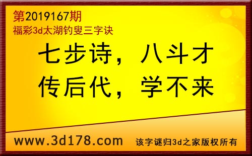 3d第19167期太湖字谜:七步诗,八斗才,传后代,学不来