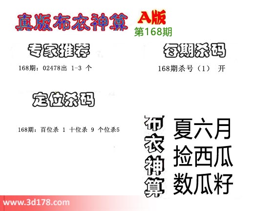 3d之家布衣图库之布衣神算图第2019168期详解: