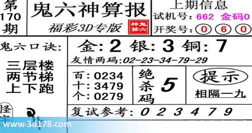 3d第19170期鬼六神算报为您推荐鬼六口诀: