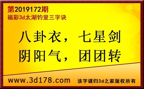 3d第19172期太湖字谜:八卦衣,七星剑,阴阳气,团团转