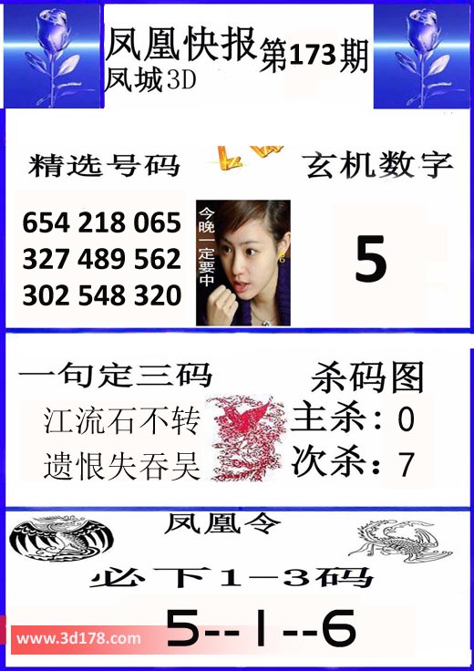 福彩3d凤凰快报图第19173期精选号码推荐: