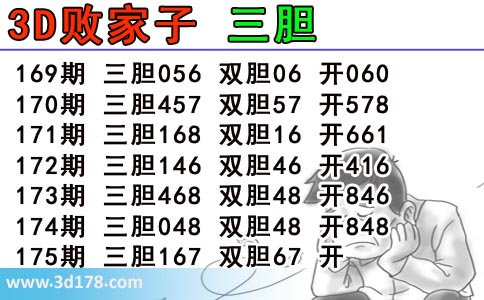 3d第2019175期败家子胆码推荐: