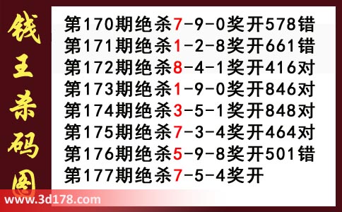 近期3d钱王杀码具体详情: