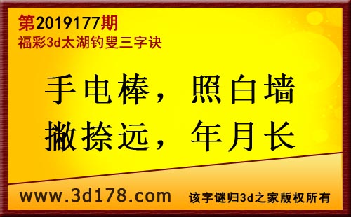 3d第19177期太湖字谜:手电棒,照白墙,撇捺远,年月长