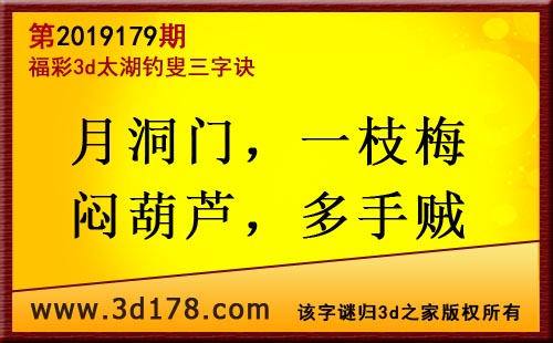 3d第19179期太湖字谜:月洞门,一枝梅,闷葫芦,多手贼