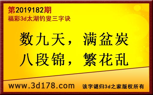 3d第19182期太湖字谜:数九天,满盆炭,八段锦,繁花乱