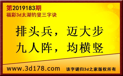 3d第19183期太湖字谜:排头兵,迈大步,九人阵,均横竖