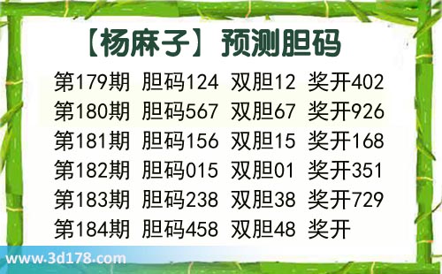 杨麻子胆184期杨麻子胆码推荐: