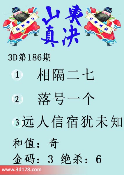 福彩3d第19186期山东真诀图如下所示: