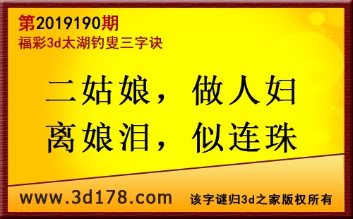 3d第19190期太湖字谜:二姑娘,做人妇,离娘泪,似连珠