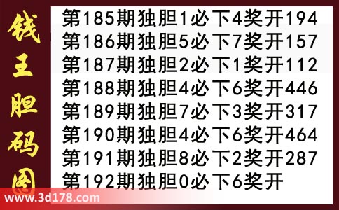 第192期钱王胆码图推荐胆码: