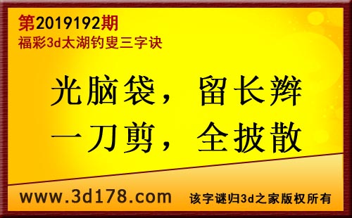 3d第19192期太湖字谜:光脑袋,留长辫,一刀剪,全披散