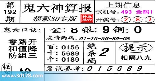 3d第19192期鬼六神算报为您推荐鬼六口诀: