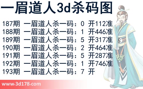 该一眉道人3d杀码图由3d之家3d图库频道原创,仅供彩民参考,温馨提供。