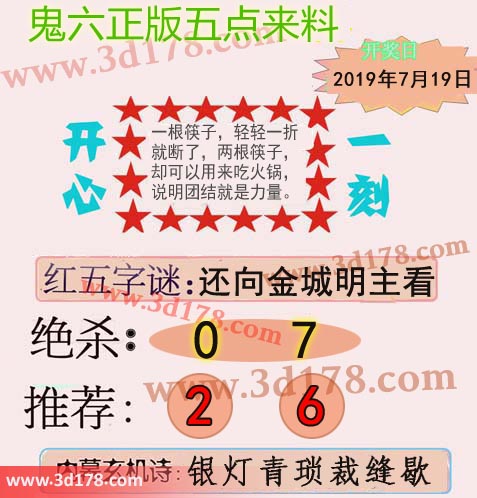 福彩3d第2019193期鬼六五点来料: