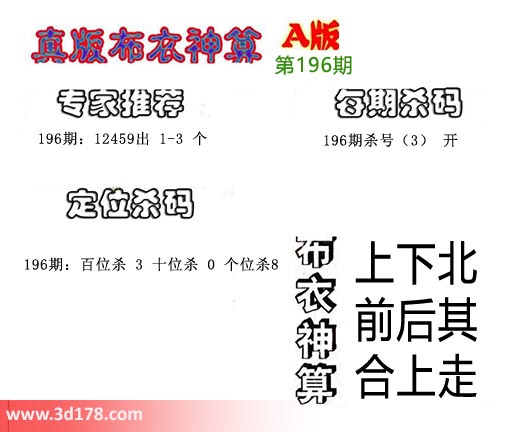 3d之家布衣图库之布衣神算图第2019196期详解: