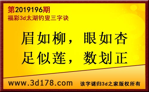 3d第19196期太湖字谜:眉如柳,眼如杏,足似莲,数划正