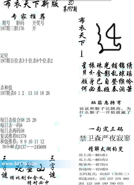 福彩3d第2019197期福彩3d布衣天下新版: