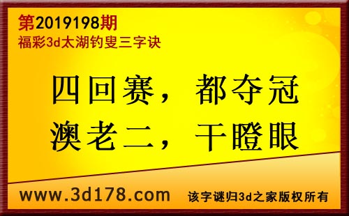 3d第19198期太湖字谜:四回赛,都夺冠,澳老二,干瞪眼