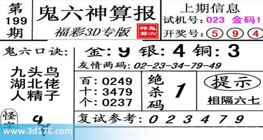 3d第19199期鬼六神算报为您推荐鬼六口诀: