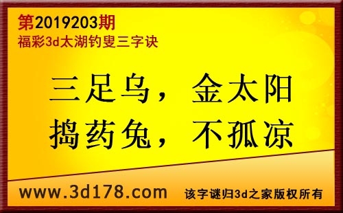 3d第19203期太湖字谜:三足乌,金太阳,捣药兔,不孤凉
