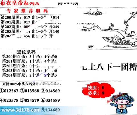 福彩3d第2019204期布衣皇帝A版布衣专家独家推荐: