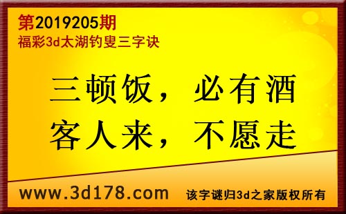 3d第19205期太湖字谜:三顿饭,必有酒,客人来,不愿走