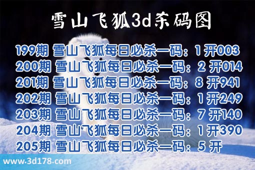 204期 雪山飞狐每日必杀一码:1 开390