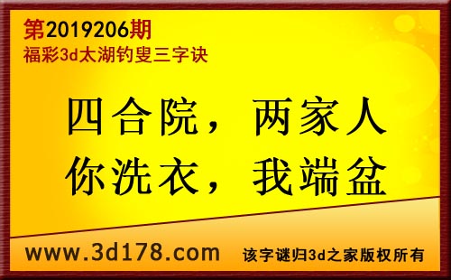 3d第19206期太湖字谜:四合院,两家人,你洗衣,我端盆