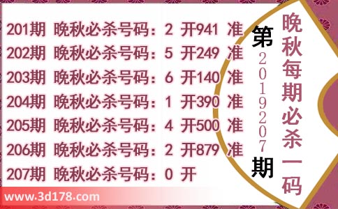 207期 晚秋必杀号码:0 开