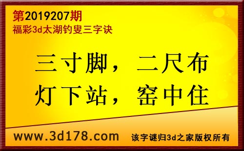 3d第19207期太湖字谜:三寸脚,二尺布,灯下站,窑中住