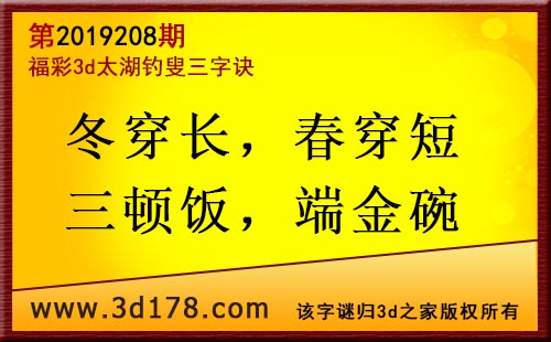 3d第19208期太湖字谜:冬穿长,春穿短,三顿饭,端金碗