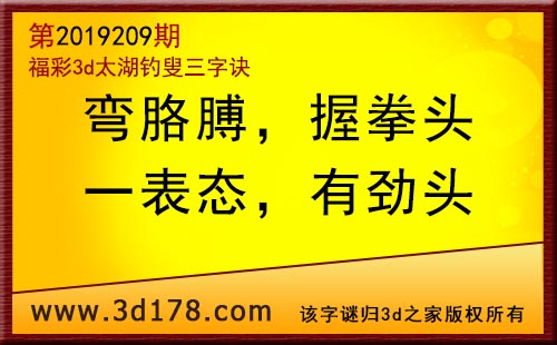 3d第19209期太湖字谜:弯胳膊,握拳头,一表态,有劲头