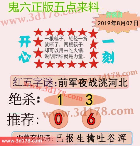 福彩3d第2019212期鬼六五点来料: