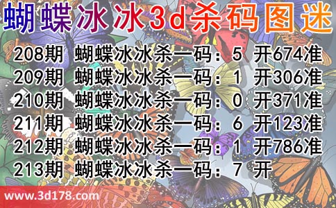 第2019213期3d蝴蝶冰冰杀码图杀号推荐分析:
