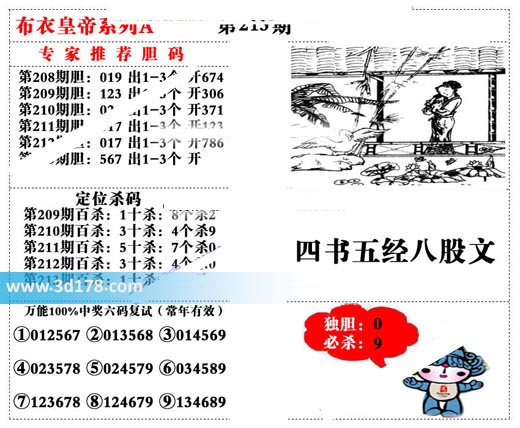 福彩3d第2019213期布衣皇帝A版布衣专家独家推荐: