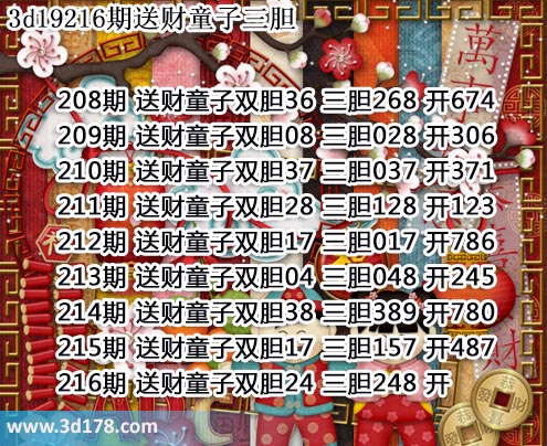 下面我们一起来回顾一下3d之家胆码图送财童子三胆近期推荐详情: